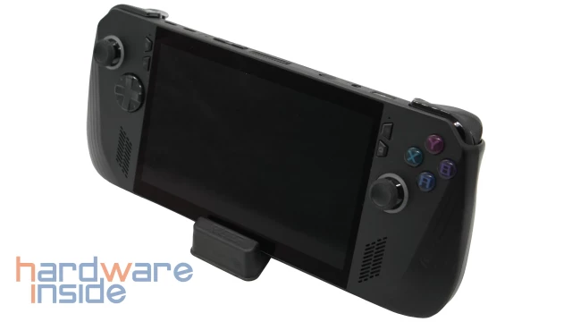 Im Inneren arbeitet ein AMD Ryzen Z1 Extreme, diese APU bietet acht Prozessorkerne sowie sechzehn Threads und eine Grafikeinheit mit zwölf Compute Units. Als Arbeitsspeicher kommen zwei LPDDR5-Chips mit je 12 GB zum Einsatz, diese arbeiten mit einer Taktung von 7.500 MT/s und bieten insgesamt 24 GB, wovon ein konfigurierbarer Teil als VRAM für die Grafikeinheit genutzt wird. Das Display bietet Full-HD-Auflösung mit bis zu 120 FPS und Unterstützung für AMD-Freesync, es erkennt Touch-Eingaben mit bis zu 10 Fingern. Neben der Touch-Eingabe kann Windows 11 auch über die Controller-Steuerelemente bedient werden, wobei der rechte Joystick und die Schultertasten eine Maus emulieren.