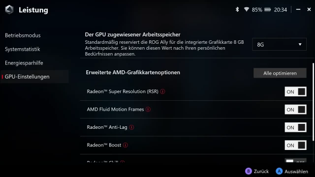 Windows 11 ist nach wie vor nicht für Handhelds optimiert. Die Oberfläche ist auf die Bedienung mit Maus und Tastatur ausgelegt, so dass wir oft auf die Windows-Tastatur zurückgreifen oder die Maus per Controller bedienen müssen, anstatt einfach mit Controller-Eingaben durch die Menüs zu navigieren. Auch das Start- und Standby-Verhalten ist nicht optimal. Während das Steam Deck beim Drücken des Power-Buttons einfach in den Tiefschlaf-Modus wechselt, bleibt das Ally zunächst im Energiesparmodus. Ebenfalls ärgerlich: Hintergrundaufgaben wie Downloads laufen nicht kontinuierlich weiter, wenn das Display nach der eingestellten Zeit ausgeschaltet wird. Für dieses Problem bietet Asus mit der Armoury Crate Anwendung eine Lösung an, die das Standby-Verhalten bei ausgeschaltetem Display verändert. Nichtsdestotrotz sehen wir hier Verbesserungspotential, das wir aber nicht unbedingt Asus zuschreiben wollen.