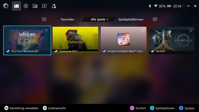 Standardmäßig wird das ROG Ally X mit bereits vorinstalliertem Windows 11 ausgeliefert, wie schon beim Vorgänger sehen wir das Betriebssystem des Handhelds auch ein Jahr später noch ambivalent. Einerseits ist Windows 11 nach wie vor die erste Wahl für die meisten PC-Spieler, weshalb auch die allermeisten PC-Spiele auf Windows 11 und somit potentiell auch auf dem ROG Ally X laufen. Auch die Wahl der Launcher bzw. Stores bleibt auf dem ROG Ally X völlig offen, Spiele können über Steam, Epic, GOG oder andere bezogen werden – oder direkt ohne dedizierte Store-Anwendung. Auch die Unterstützung von Mods ist ein Punkt, der nach wie vor sehr für Windows als Betriebssystem für Spiele spricht. Etwas abstrakt betrachtet ist das ROG Ally X als Gaming-Handheld einfach ein verkleinertes Gaming-Notebook mit ähnlichen Schwächen und Stärken.
