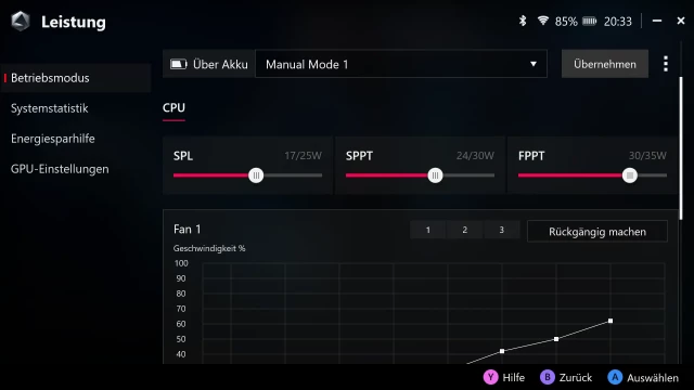 Nachdem wir uns nun mit dem Handheld und seiner Software vertraut gemacht haben, wollen wir uns nun auf das Wesentliche konzentrieren: Der Leistungsfähigkeit. Den Anfang wollen wir mit synthetischen Benchmarks machen, um vergleichbare Leistungsmesswerte zu erhalten. Die Tests wiederholen wir in den verfügbaren Leistungsprofilen, da diese einen großen Einfluss auf die Leistungsaufnahme und damit auf die Spielzeit mit einer Akkuladung haben.