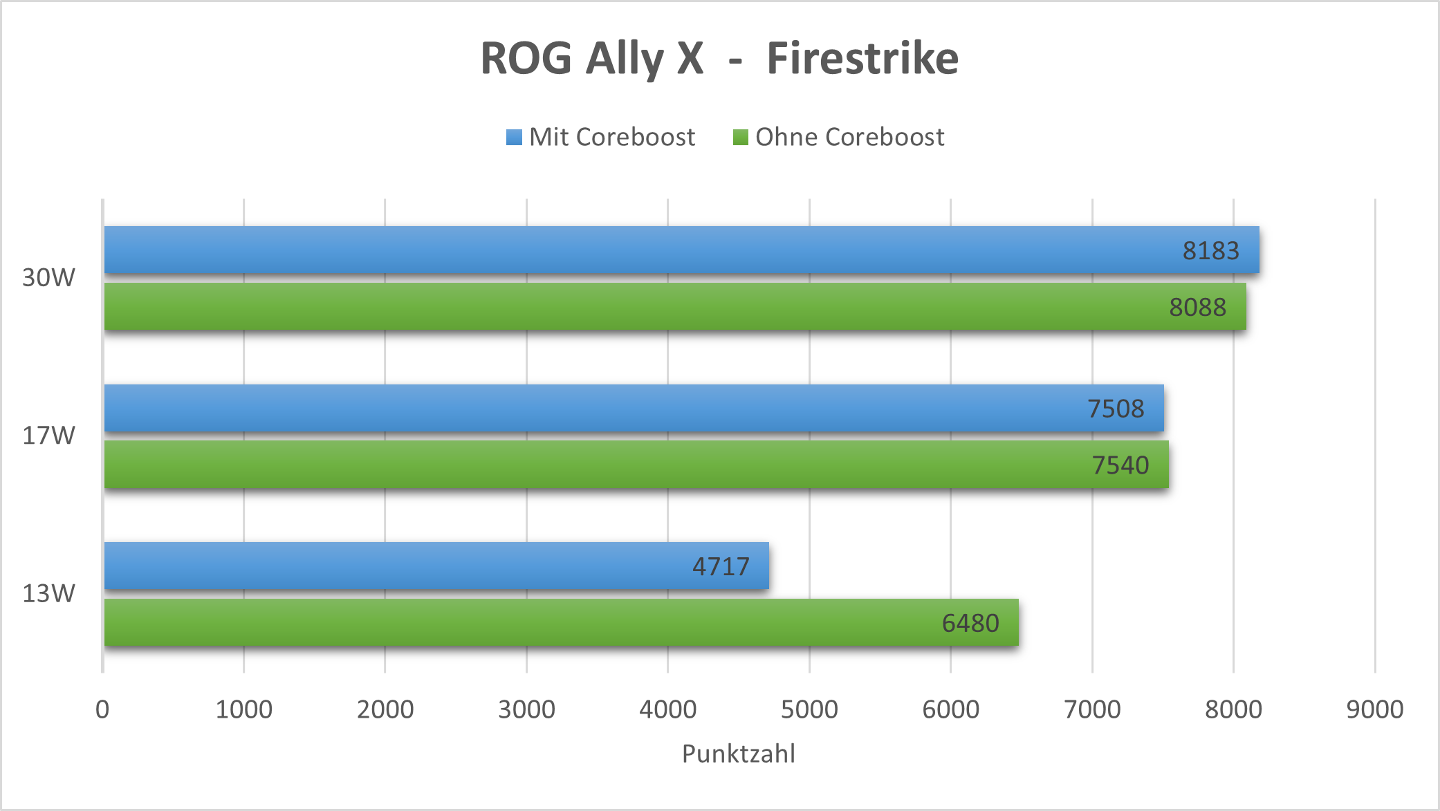 Gleich vorweg: Unsere Benchmarktests sind nicht ohne weiteres mit den Ergebnissen aus dem Test des Ally Z1E vergleichbar. Das liegt zum einen an den inzwischen neu verfügbaren BIOS- und Treiber-Versionen, zum anderen bietet das Ally X andere Leistungsprofile. Wir werden uns in naher Zukunft noch einmal mit einem genaueren Vergleich der beiden Systeme beschäftigen.