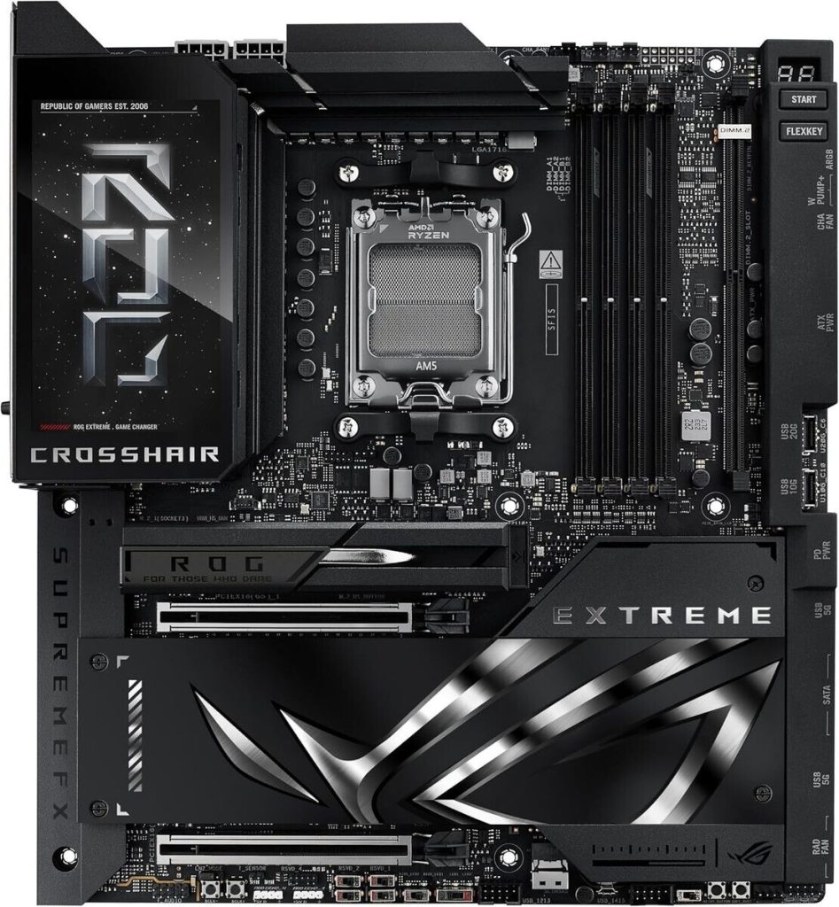 Hier sind die ersten Bilder des ASUS ROG Crosshair X870E Extreme, dem neuen Flaggschiff-Mainboard von ASUS für den Sockel AM5. Bisher führte ASUS seine AMD-800er-Chipsatz-Serie mit dem ROG Crosshair X870E Hero für maximale Konnektivität und dem ROG Crosshair X870E Apex für kompromissloses Overclocking an. Nun hebt das Unternehmen die Messlatte noch einmal an – ein Schritt, der sich angesichts der Ryzen 9000X3D-Serie als schnellste Gaming-Prozessorreihe nur konsequent anfühlt.