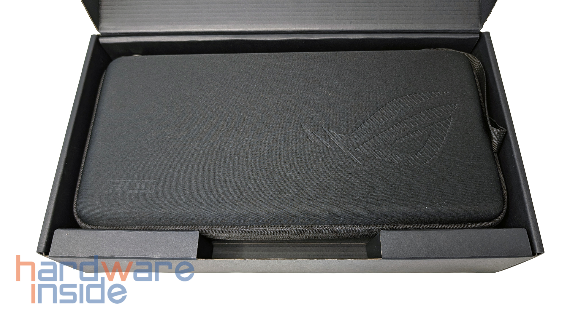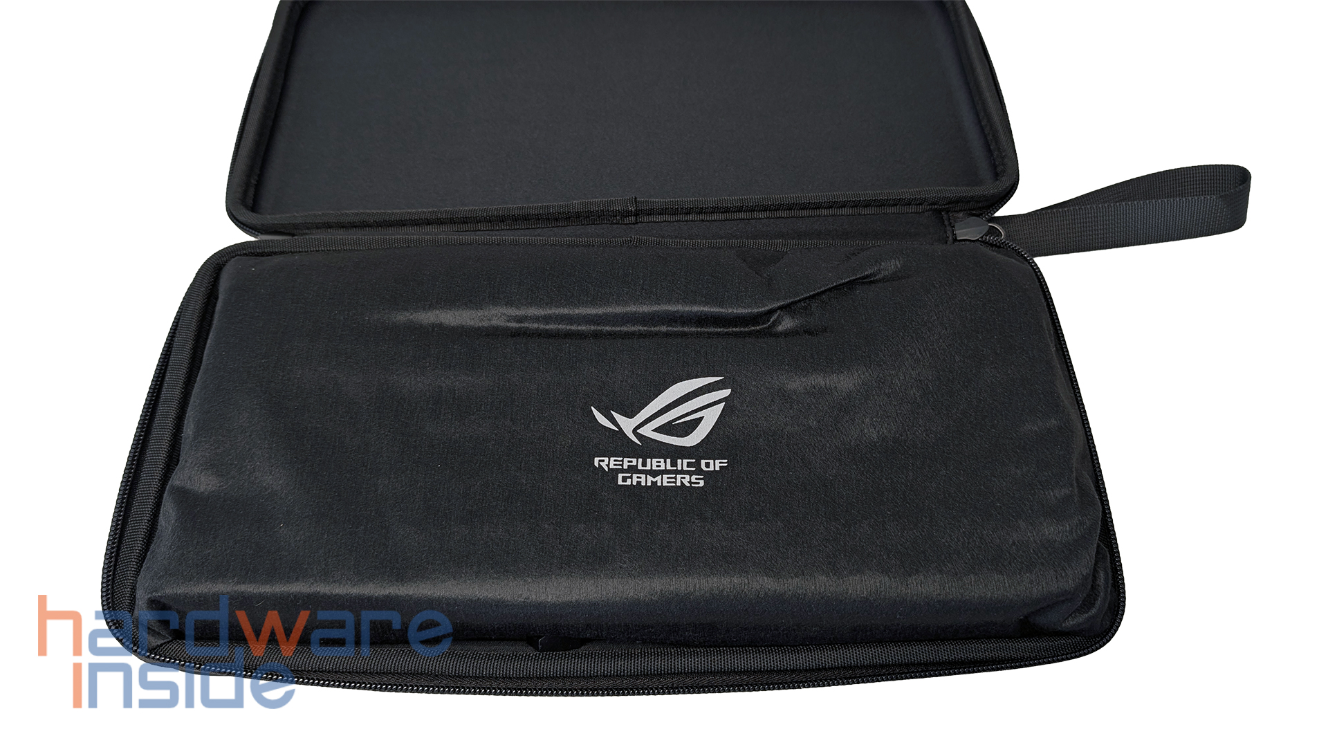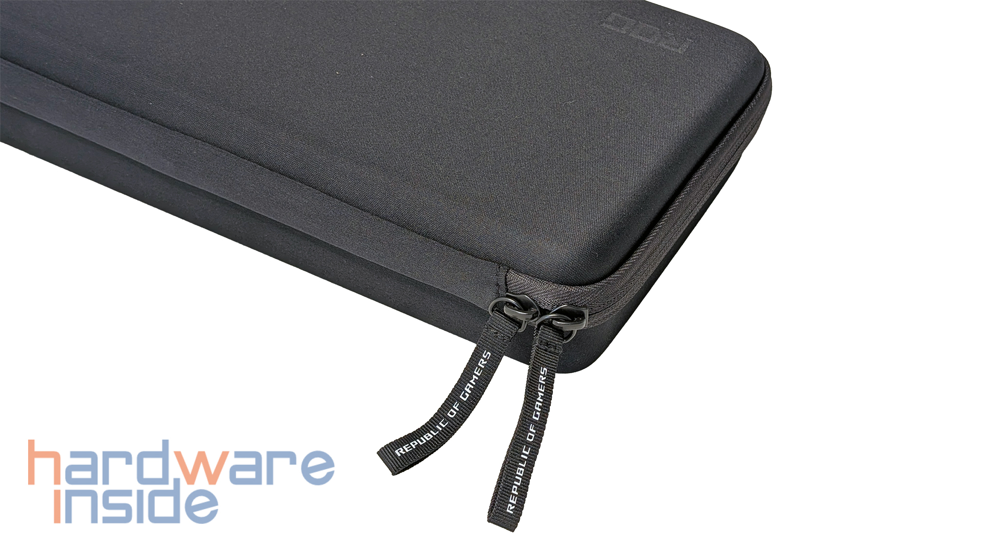 Auch optisch und haptisch macht das Etui einen stimmigen Eindruck. Das Material ist gut gewählt und passt zum hochwertigen Gesamtauftritt der Tastatur. Auf der rechten Seite ist das ASUS-ROG-Logo eingelassen. Unten links befindet sich noch einmal der ROG-Schriftzug. Hinzu kommen die Bändel am Zip-Verschluss auf denen „Republic of Gamers“ zu lesen ist. Solche Details sind zwar nicht entscheidend für die Funktionalität, tragen aber dazu bei, dass das Case nicht wie ein beliebiges Zubehörteil wirkt, sondern sauber in das Gesamtbild des Produkts eingebunden ist.