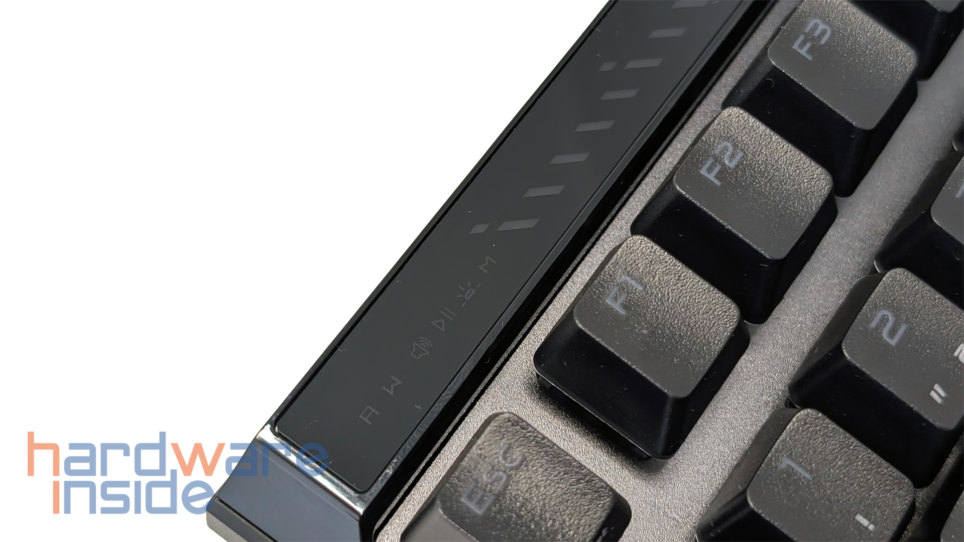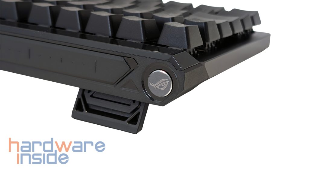 Auffällig ist auch die Kombination aus Multifunktionsbutton und Touch-Panel. Über diese Einheit lassen sich mehrere Funktionen direkt ansteuern, darunter Lautstärke, Mediensteuerung, Beleuchtungshelligkeit sowie eine frei belegbare Scroll- bzw. Custom-Funktion. Die Bedienung erfolgt über Wischgesten und Doppeltipp, wodurch ASUS auf zusätzliche dedizierte Tasten verzichten kann. Das wirkt modern und passt gut zum kompakten Aufbau der Tastatur, da trotz des kleinen Formats weiterhin eine ganze Reihe an Komfortfunktionen direkt erreichbar bleibt.