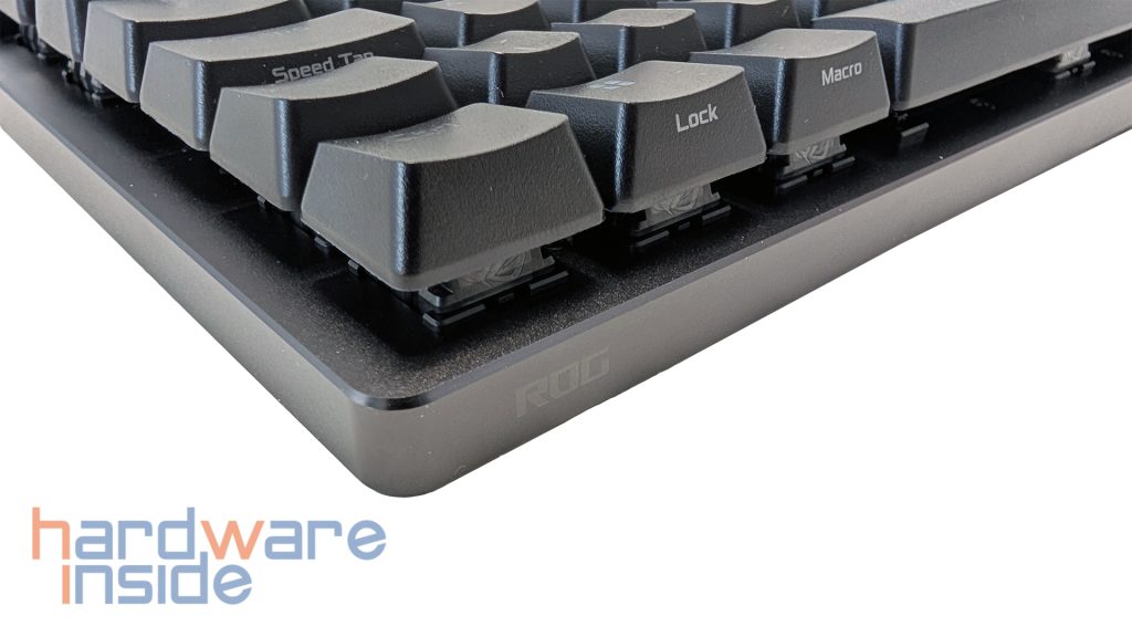 Die ROG PBT Doubleshot Keycaps hinterlassen dabei technisch bereits einen ordentlichen Eindruck. ASUS bewirbt sie als langlebige Tastenkappen mit strukturierter Oberfläche und hebt zusätzlich hervor, dass die Tasten eine mittlere Bauhöhe sowie einen verkürzten Stem haben. Dadurch soll das Wackeln der Keycaps reduziert werden und das Tippgefühl soll insgesamt sauberer und kontrollierter ausfallen. Gerade bei einer Tastatur dieser Klasse sind das sinnvolle Details, da sie zeigen, dass ASUS nicht nur auf die Reaktionsgeschwindigkeit, sondern auch auf die Qualität des Anschlags achtet.