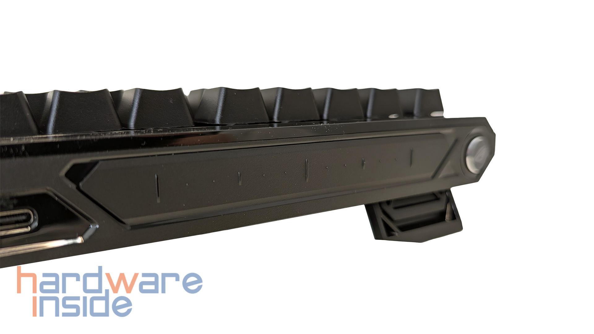 Besonders positiv fällt im Alltag auf, dass ASUS viele dieser Funktionen nicht nur über die Software zugänglich macht, sondern direkt an die Tastatur selbst bindet. Der Rapid-Trigger-Schalter, das Einstellrad für Auslösepunkt und Empfindlichkeit sowie die RGB-Lichtleiste als unmittelbare Rückmeldung sorgen für eine sehr direkte Bedienung der Falchion Ace 75 HE. Das ist gerade bei einer Hall-Effekt-Tastatur von Vorteil, da sich wichtige Einstellungen schnell anpassen lassen, ohne dass man erst in Menüs oder die Software wechseln muss. Das passt gut zur grundsätzlich sehr praxisnahen Ausrichtung des Modells.
