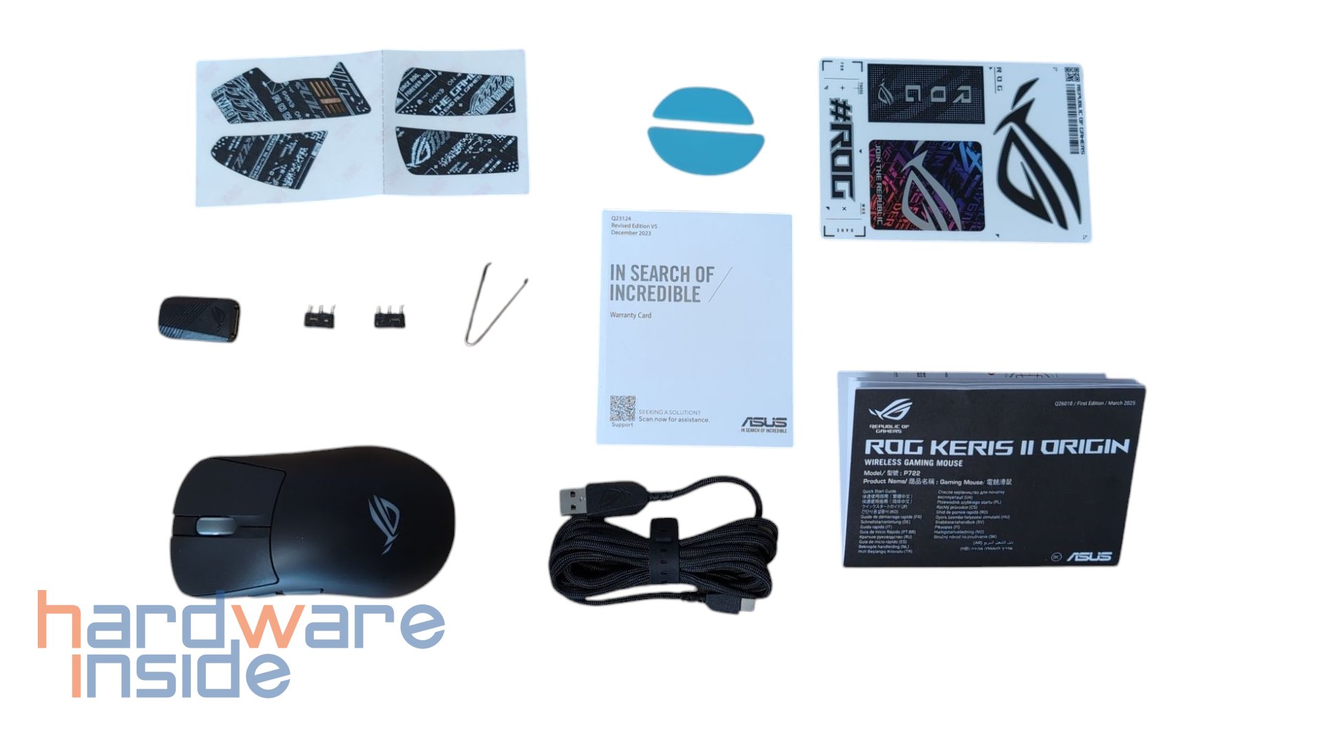 Neben der ASUS ROG Keris II Origin-Maus ist folgendes im Lieferumfang enthalten: