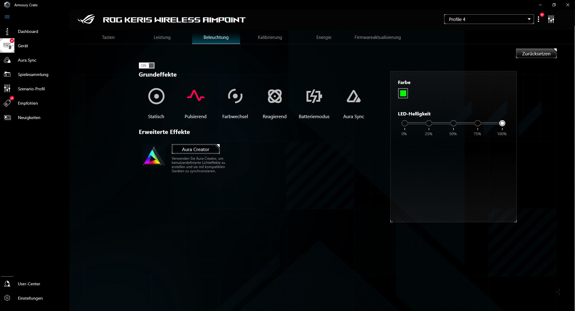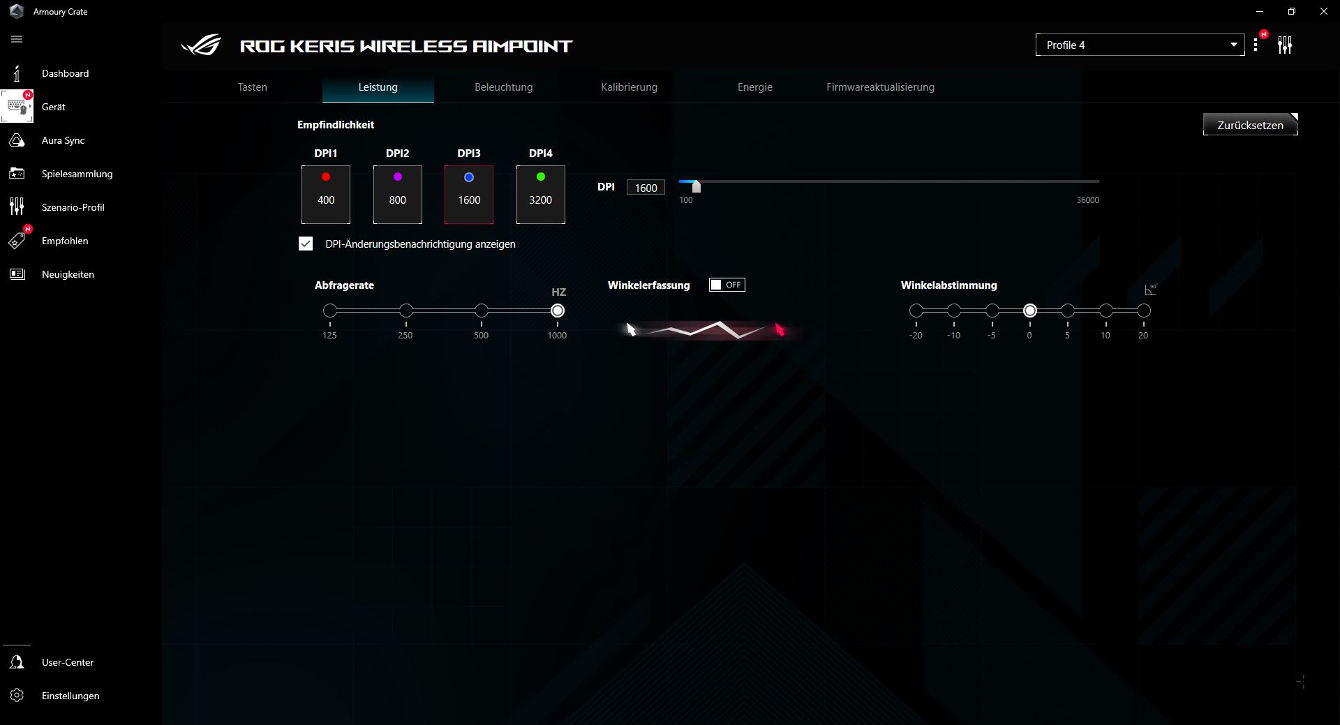 | Sensor | ROG AimPoint (optischer Sensor) |