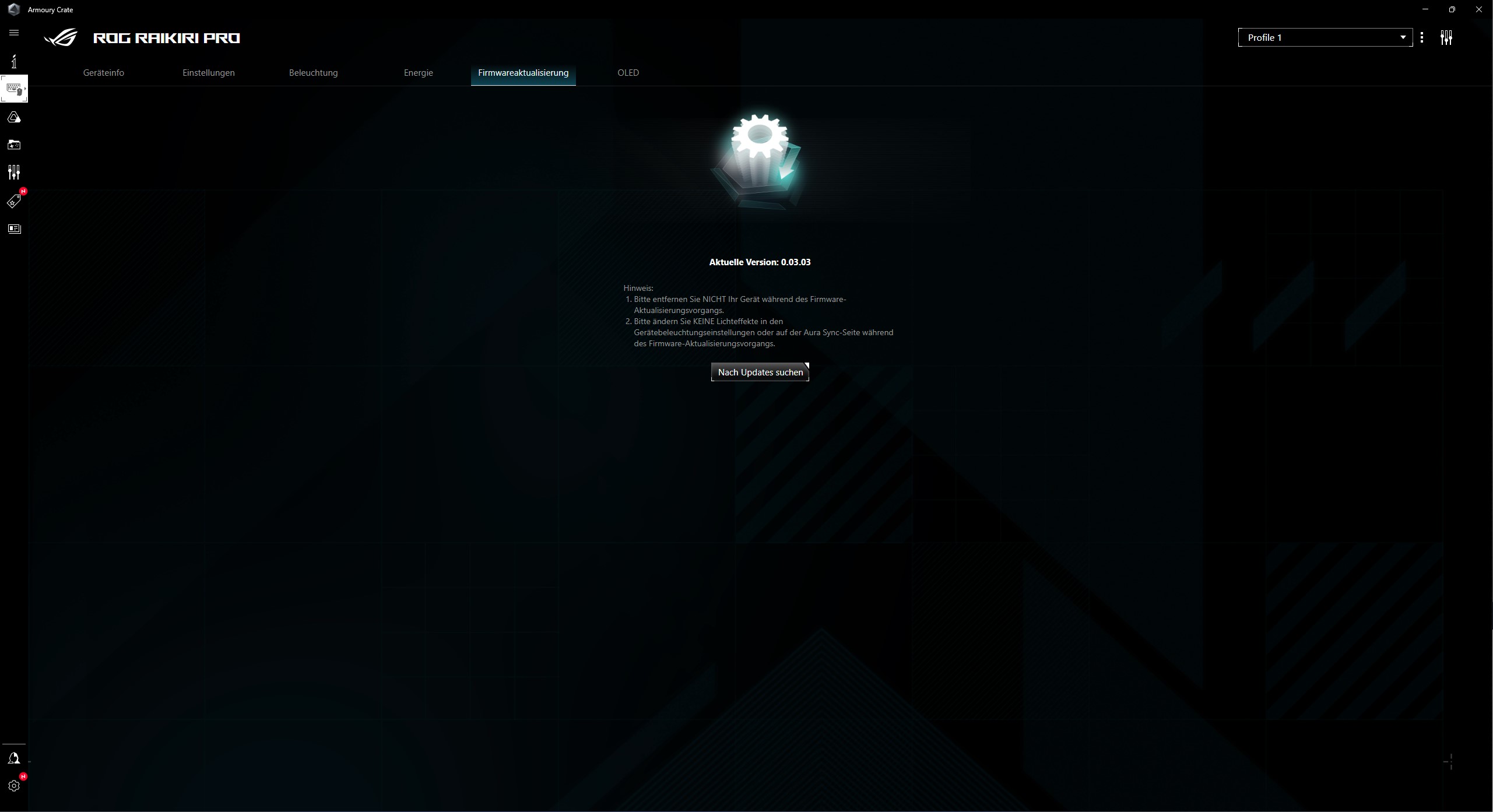 ASUS setzt bei allen Peripheriegeräten auf die Software „Armoury Crate“. Diese bietet wie gewohnt zahlreiche Einstellungsmöglichkeiten. Sobald der ASUS ROG Raikiri Pro Controller per Kabel mit dem PC verbunden ist, können wir verschiedene Einstellungen vornehmen, um unser Spielerlebnis zu verbessern. Dabei können wir unsere Einstellungen in bis zu vier verschiedenen Profilen speichern und bei Bedarf über das integrierte OLED Display abrufen.
