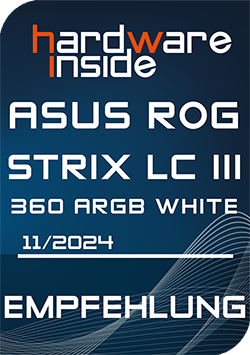 Die ASUS ROG STRIX LC III 360 ARGB White Edition überzeugt gerade in der Verarbeitung und der Hingabe überall kleine Gimmicks zu verteilen. Die Wasserkühlung leistet selbst im 0dB Modus saubere Arbeit, was vermutlich an der Asetek Gen7 V2 Pumpe liegt, die durch eine überarbeitete Kühlerplatte die Wärme optimal von der CPU abführen kann. Eine nette Idee ist der drehbare Gehäusedeckel, wobei sich die Lichtspiele bei unserer Version eher in Grenzen halten. Interessanter wird dieses Konzept, wenn man die Abdeckungen einzeln kaufen kann und es mehr Variationen gibt. Leider gibt es auch ein paar negative Punkte, wie die Wahl von schwarzen Kabeln, die von der Pumpe abgehen, sowie die Verwendung von schwarzen Schrauben für die Befestigung der Lüfter in einem ansonsten komplett weißen Set. Der Preis ist mit derzeit knapp 230 € sehr hoch, aber wir hoffen, dass der Preis noch weiter sinkt und ASUS sich dazu entschließt, die Abdeckungen für das Pumpengehäuse sowohl einzeln zu verkaufen als auch mehr Varianten herauszubringen. Wir empfehlen das Produkt aus den oben genannten Gründen.