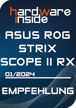 Die Asus ROG Strix Scope II RX im deutschen Tastenlayout ist derzeit ab 152,90 € im Preisvergleich gelistet. Für diesen Preisbereich finden wir eine sehr gute Ausstattung vor, auch wenn hier nur Kunststoffe zum Einsatz kommen. Lobenswert finden wir den Einsatz von PBT-Kunststoff bei den Tastenkappen, was die Haltbarkeit erhöht. Features wie die Makro-Direktaufzeichnung, das Multifunktionsrad, Schnellwahltasten, die umfangreiche RGB-Beleuchtung und die Handballenablage sind weitere Pluspunkte. Insgesamt wusste die Tastatur zu überzeugen, worauf wir unsere Empfehlung aussprechen.