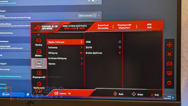 Auch beim Test mit Testbildern schneidet der Monitor sehr gut ab. Kreise sind perfekt rund, Linien klar erkennbar und auch bei viel Text ist alles gut lesbar. Ab Werk deckt der Monitor 95 Prozent des DCI-P3- und 130 Prozent des sRGB-Farbraums ab, was für satte Farben sorgt. Mit einer Helligkeit von 400 nits bietet der Monitor genügend Leuchtkraft, um sowohl beim Spielen als auch bei der Bildbearbeitung eine klare und lebendige Darstellung zu gewährleisten. Dank des IPS-Panels ist die Bildstabilität generell sehr gut. Dreht man den Monitor allerdings um 45°, wird das Bild etwas blasser. Da dies aber nicht die Regel ist, fällt dies nicht wirklich negativ auf. Alles in allem bietet das ASUS ROG Strix XG27UCS ein hervorragendes visuelles Erlebnis.