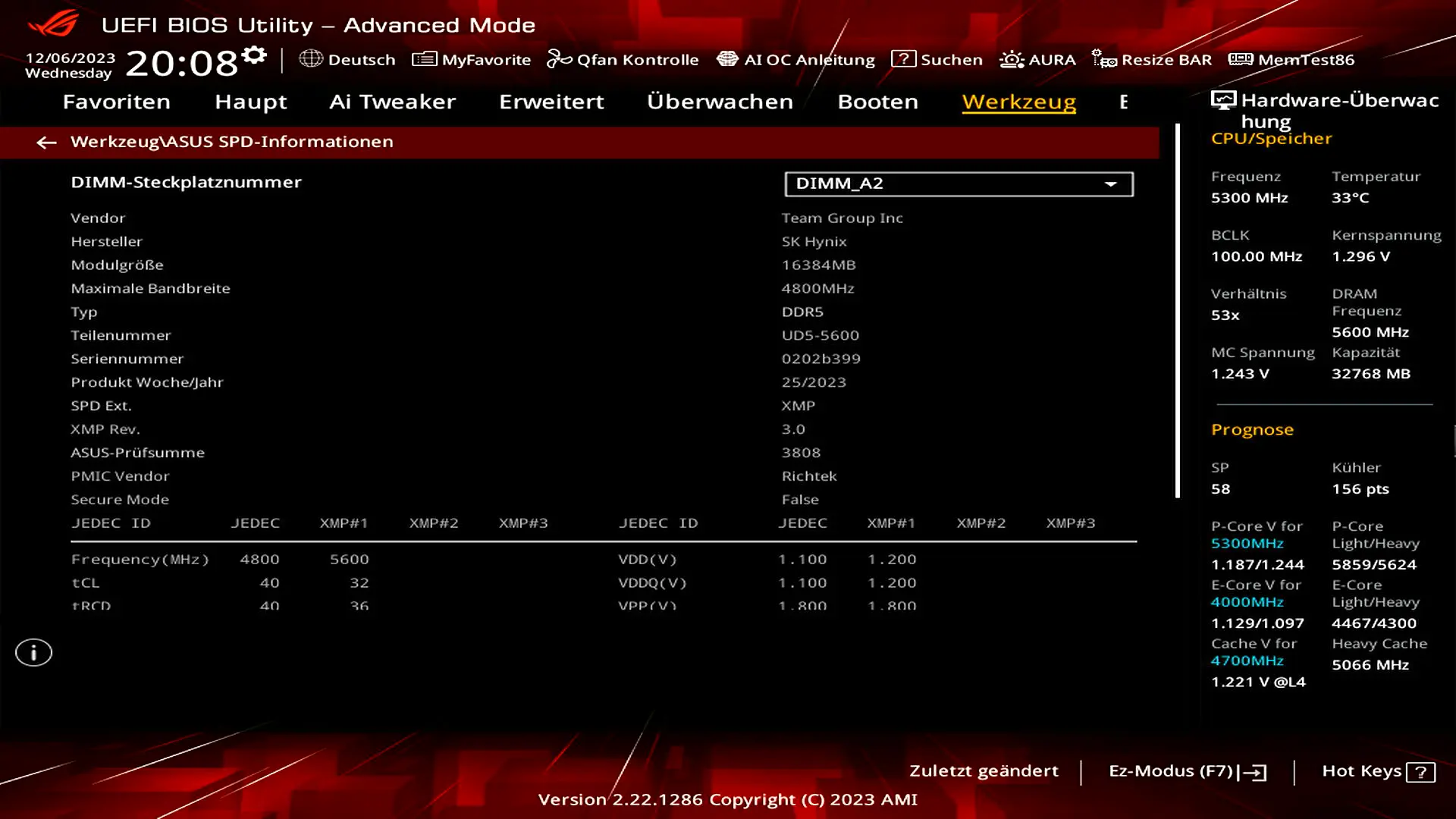 | Arbeitsspeicher | 2x 16GB TeamGroup T-Force VULCAN DDR5-5600 |
