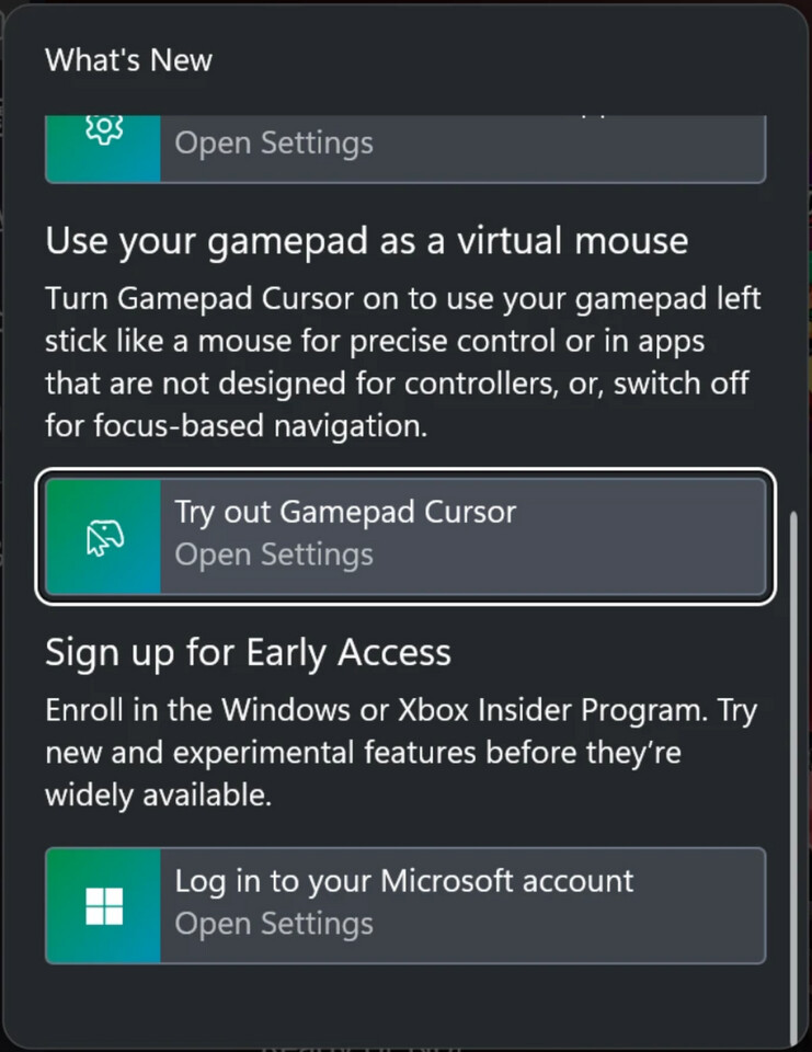 Bislang hatten Geräte ohne Trackpads, wie das Ally, Nachteile gegenüber dem Steam Deck oder Lenovo Legion Go. Mit dem neuen „Gamepad Cursor“ lässt sich der Cursor per Stick bewegen und mit der A-Taste klicken, was die Navigation deutlich erleichtert.
