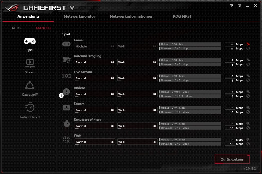 Game First V ist ein Werkzeug zur Netzwerkoptimierung für Gamer. Hier können Bandbreiten für bestimmte Anwendungen festgelegt werden. Wenn ihr einen ROG Router euer Eigen nennt, welcher die ROG First-Funktion unterstützt, dann kann mit dieser Funktion auch die Übertragung der Netzwerkpakete durch das System beschleunigt werden. Das Ergebnis soll ein schnelleres und reibungsloses Netzwerkerlebnis sein.