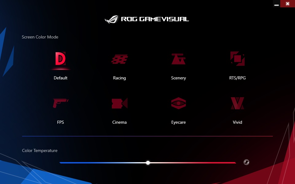 ROG GameVisual ist eine Gaming-App, die auf Splendid basiert und Gamern durch eine Feineinstellung der Farbverwaltung für jedes Spiel ein neues visuelles Erlebnis bieten soll. Die Einstellungen bringen dabei folgende Veränderungen: