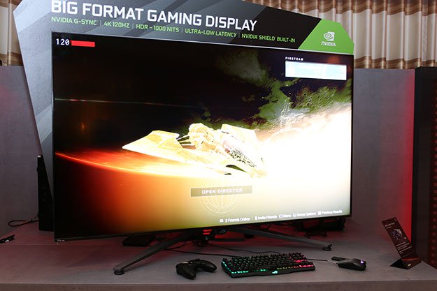 Wir werden mit dem Gaming Display des Unternehmens beginnen. Es handelt sich um ein 65-Zoll-Gaming-Display, das auf NVIDIAs BFGD-Blueprint basiert und speziell für Gamer gedacht ist. ASUS ist eines von mehreren Unternehmen, die eines dieser großen Displays auspacken und wie die anderen bietet es ein 4K-Panel mit echter 120Hz Bildwiederholfrequenz und HDR-Unterstützung. Es verfügt außerdem über eine direkte Hintergrundbeleuchtung, eine Spitzenhelligkeit von 1.000 Nits und G-Sync-Unterstützung.