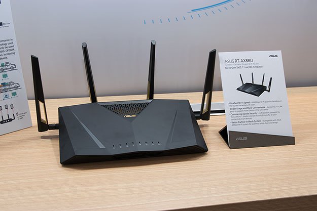 Schließlich ist hier ein Blick (oben) auf den RT-AX88U, einen 802.11ax-Router der nächsten Generation von ASUS, der ein aggressives Styling bietet, für das ASUS in seiner Router-Familie bekannt ist. Diese Geräte von morgen bieten ultraschnellen Geschwindigkeiten, einschließlich bis zu 1.148 Mbit/s im 2,4 GHz-Band und bis zu 4.804 MHz im 5 GHz-Band.