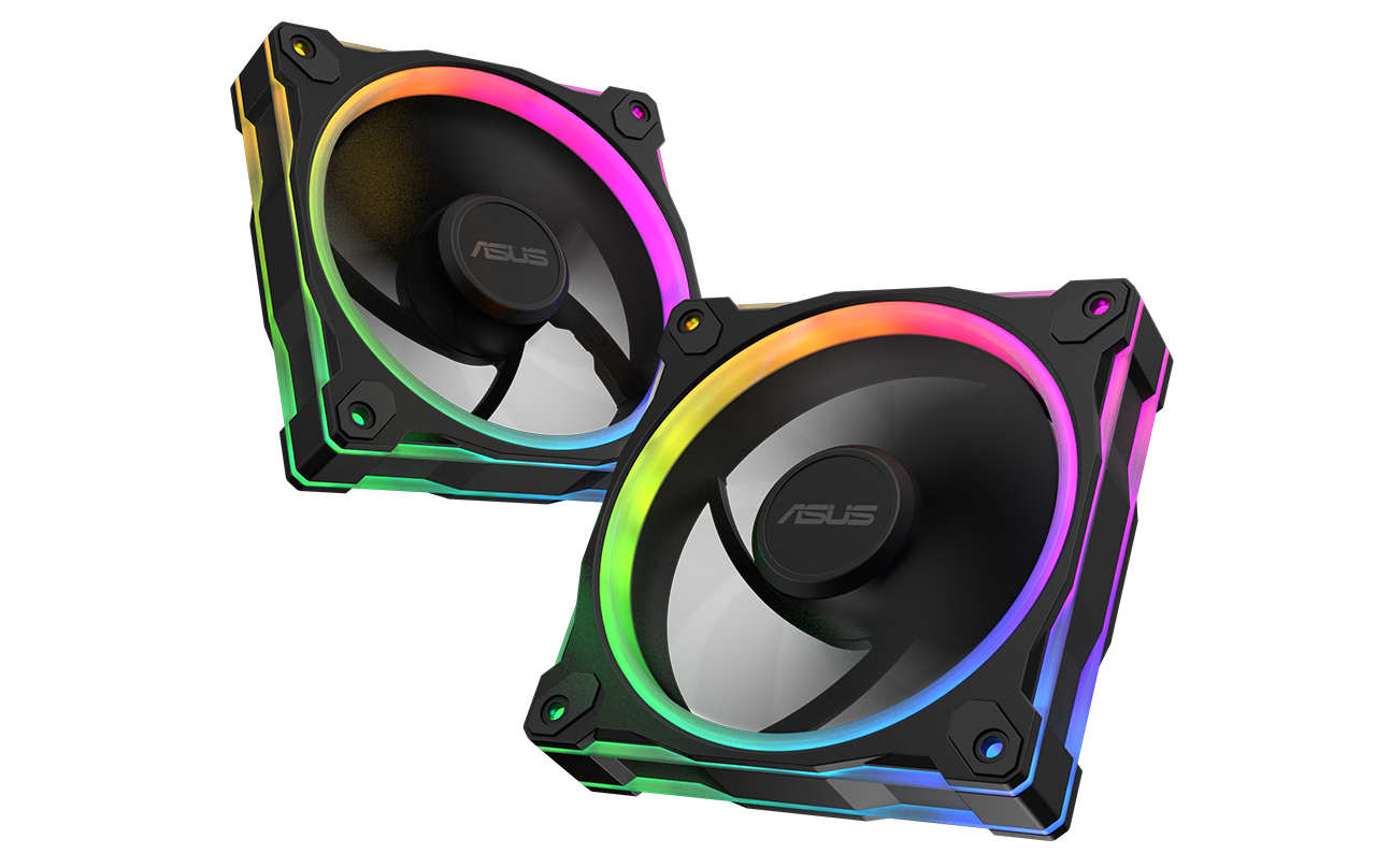 Die Lüfter der Serie MR120 verfügen über 20 adressierbare RGB-LEDs und ein zweilagiges LED-Matrix-Design. Ein strahlender Lichtring um die Flügel sowie eine gleichmäßige Ausleuchtung auf beiden Seiten des Lüfterrahmens bringen die Farben des Lüfters aus jedem Blickwinkel zur vollen Geltung. Alle diese Lichter sind Aura Sync-kompatibel, sodass Benutzer ihr Aussehen über die ASUS Armoury Crate-Software steuern und mit anderen Aura Sync RGB-Komponenten koordinieren können.