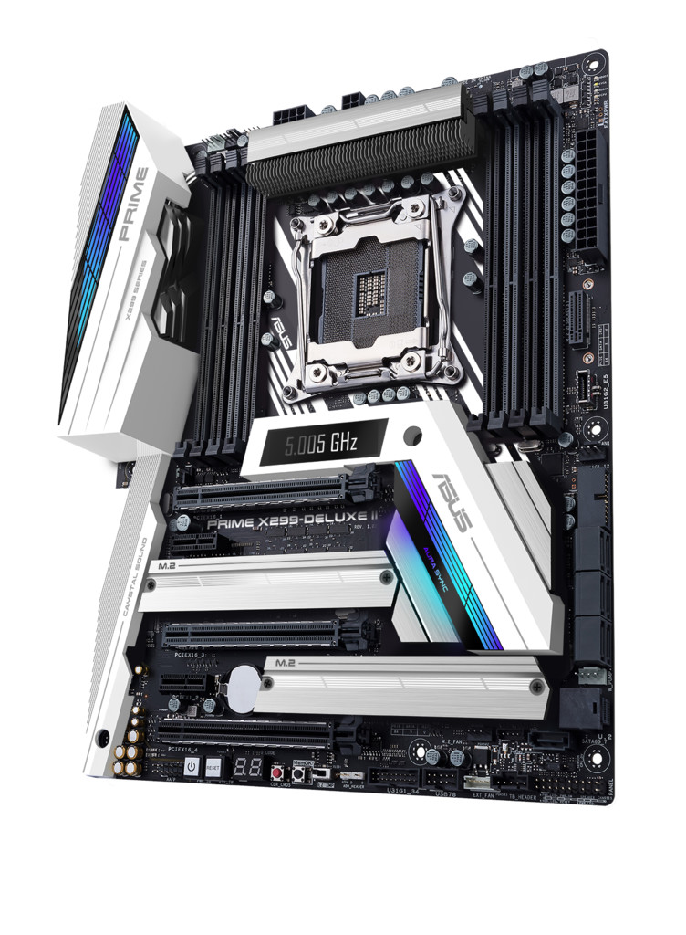 Im Gegensatz zu unserer letzten Generation von X299-Boards setzt der Prime X299-Deluxe II die Unterstützung für Vierkern-Kaby Lake-X-CPUs herab, um Chips mit höherer Kernanzahl und mehr Konnektivität optimal nutzen zu können. Mit bis zu 18 Kernen, vier Speicherkanälen und 44 PCIe-Lanes benötigen diese Prozessoren deutlich mehr Saft als typische Desktop-CPUs.