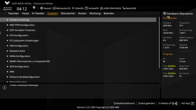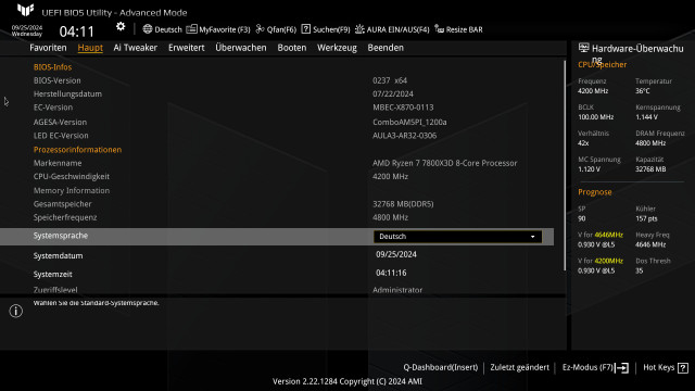 Starten wir das BIOS des ASUS TUF GAMING X870-PLUS WIFI zum ersten Mal, werden wir vom EZ-Mode begrüßt. Bereits hier haben wir diverse Einstellungsmöglichkeiten wie EXPO zu aktivieren oder die Lüfterkurven zu bearbeiten. Interessanter wird es im erweiterten Modus, der über F7 oder den Button unten rechts aufgerufen werden kann. Hier bietet UEFI dann alles, was das Enthusiastenherz begehrt. Fast jede Einstellung hat einen Infotext, auch wenn nicht alle im Detail erklären, was die jeweilige Funktion eigentlich macht. Über das X oben rechts kann man das BIOS verlassen, vorher zeigt das UEFI unsere vorgenommenen Änderungen an und fragt, ob wir uns mit unseren Änderungen sicher sind. Generell ist das UEFI gut organisiert und man findet sich recht schnell zurecht. Jede der Kategorien hat viele Untermenüs, was gerade bei der ersten Benutzung etwas nervig sein kann. Der Reiter AI-Tweaker ist hingegen nicht so verschachtelt und zeigt direkt alles Wichtige an, was für das Übertakten wichtig ist. Das UEFI kann über EZ-Flash im Tab Werkzeuge oder über den dafür vorgesehenen Button auf dem I/O-Shield des Mainboards aktualisiert werden. Beide Methoden benötigen einen USB-Stick mit der neuen BIOS-Version.