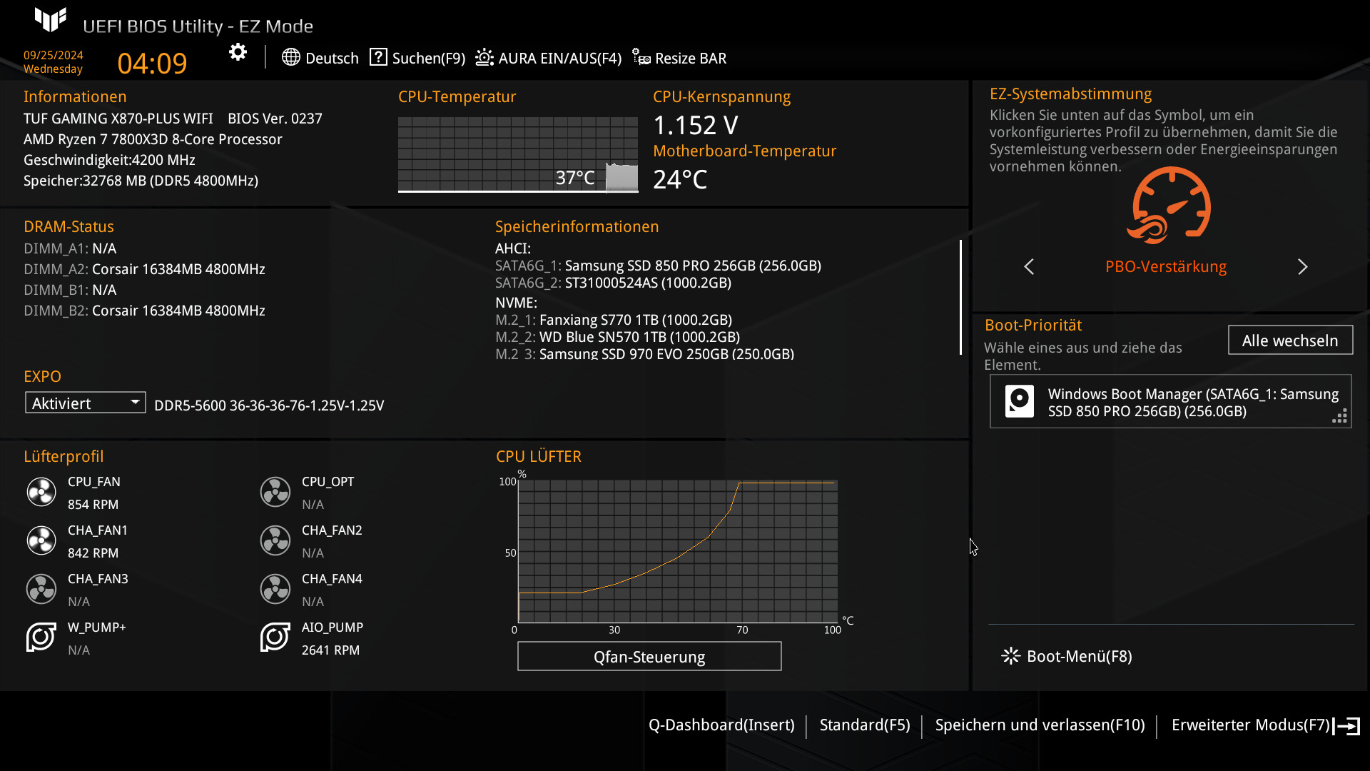 | Arbeitsspeicher | 2x16GB-5600 DDR5 Corsair Vengeance EXPO |