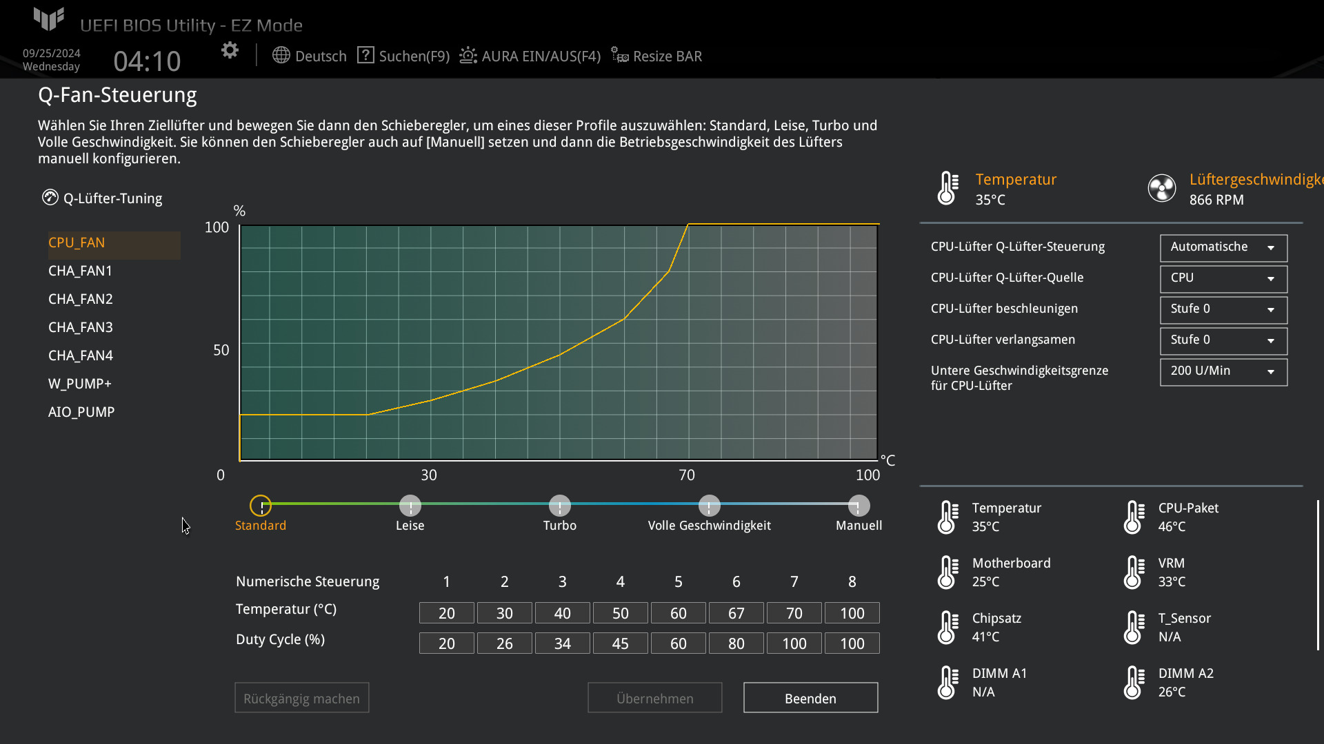| Lüfter | 1x CPU Fan 1x AIO Pump 4x Chassis Fan 1x W_PUMP+ |
