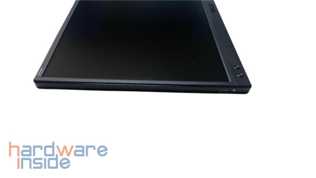 Auch an den Seiten des Gehäuses setzt sich die schlichte Optik fort. An der linken unteren Seite ist eine USB-C-Buchse verbaut. Diese wird sowohl für den Bildschirm wie auch für die Stromversorgung genutzt. Es wird kein zusätzliches Netzteil benötigt.