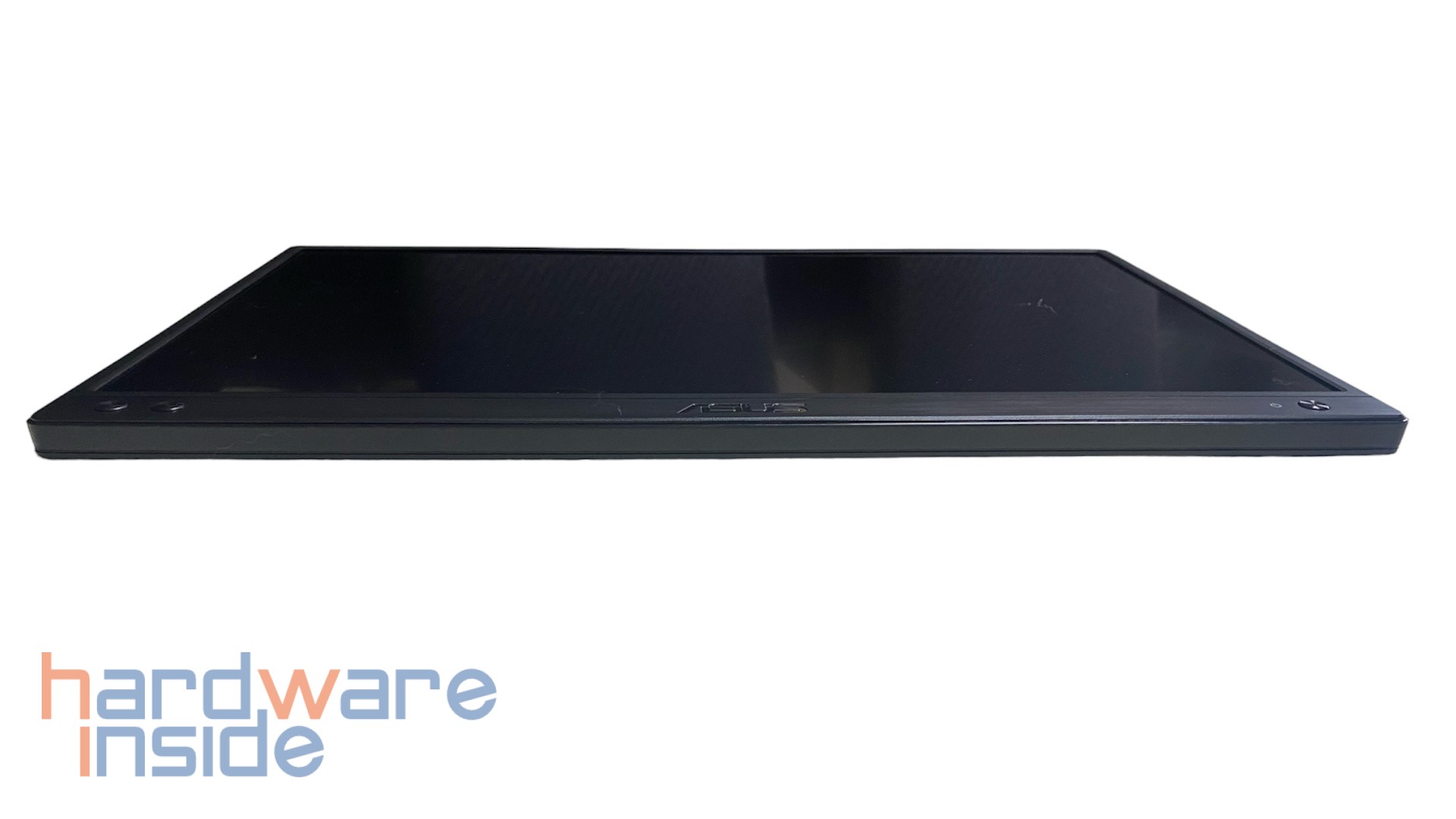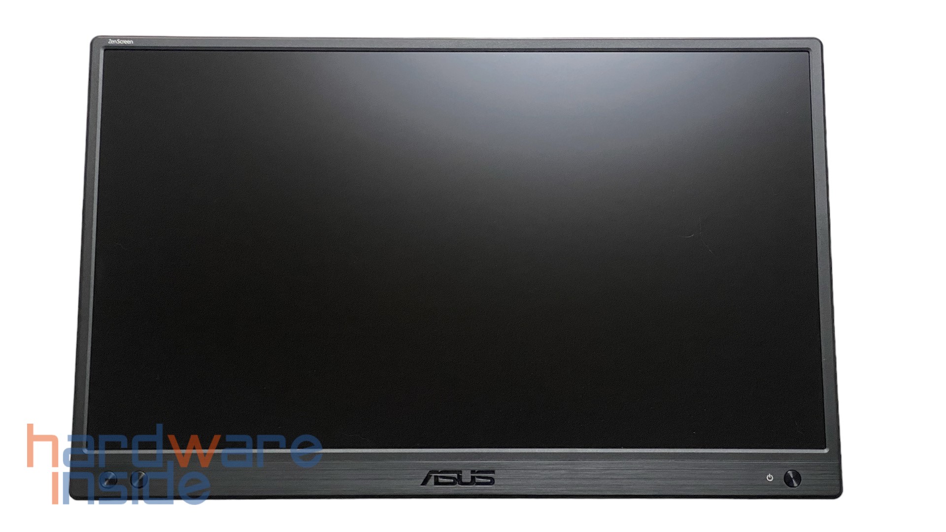 Das komplett in Schwarz gehaltene Gehäuse besteht aus schwarzem Kunststoff. Die schlichte Front ist so gearbeitet, dass die Optik gebürstetem Aluminium ähnelt. An der Unterseite ist mittig das ASUS-Logo eingearbeitet. Hier sind auch drei schwarze runde Tasten aus Metall für die Bedienung untergebracht. Auf der rechten Seite befindet sich der Ein-/Aus-Taster, links zwei weitere für die Bedienung. In der linken oberen Ecke ist noch der Modellname „ZenScreen“ in weißer Schrift auf das Gehäuse aufgedruckt. Im ZenScreen MB166CR arbeitet ein IPS-Panel mit einem Pixelabstand von 0,179 mm und einer matten Non-Glare Oberfläche. Das Display besitzt eine Full-HD-Auflösung, eine Helligkeit von 250 cd/㎡ und einen Kontrast von 800:1. Die Refresh-Rate liegt bei 5 ms mit einer Winkelsichtbarkeit von 178°.
