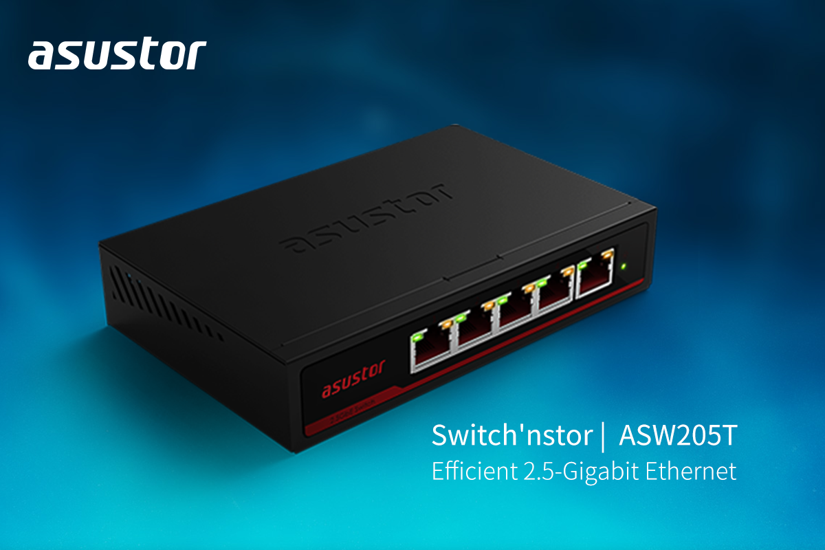 Neu im Produktportfolio ist der Switch’nstor mit einem Realtek 2.5-GbE-Controller. Der erste Netzwerk-Switch von ASUSTOR verfügt über fünf 2.5-Gigabit-Ethernet-Ports, die ASUSTOR NAS-Lösungen und Computer zusammenbringen. Und das sogar, wenn einzelne Endgeräte gar nicht 2.5GbE-fähig sind: Der separat erhältliche AS-U2.5G2 Adapter macht nämlich jeden USB-3.2-Anschluss zum Highspeed-Ethernet-Port und beschleunigt so die Übertragungsraten im Heimnetzwerk deutlich. Selbstverständlich ist der Switch’nstor auch für Gigabit- sowie 100-Megabit-Verbindungen geeignet und somit zu nahezu allen Endgeräten kompatibel.