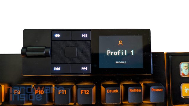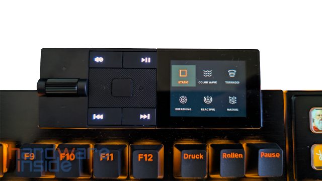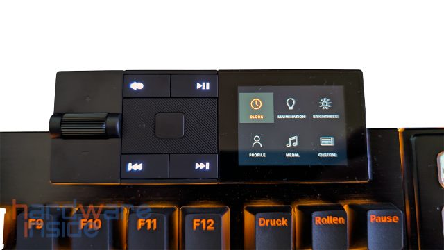 | Besonderheiten | Mediadock mit dedizierten Medientasten und Display Nummernblock mit 8x 140 x 140 Pixel Display Zusatztasten Gepolsterte Handballenablage für Tastatur und Numblock Profile werden in der Tastatur gespeichert |