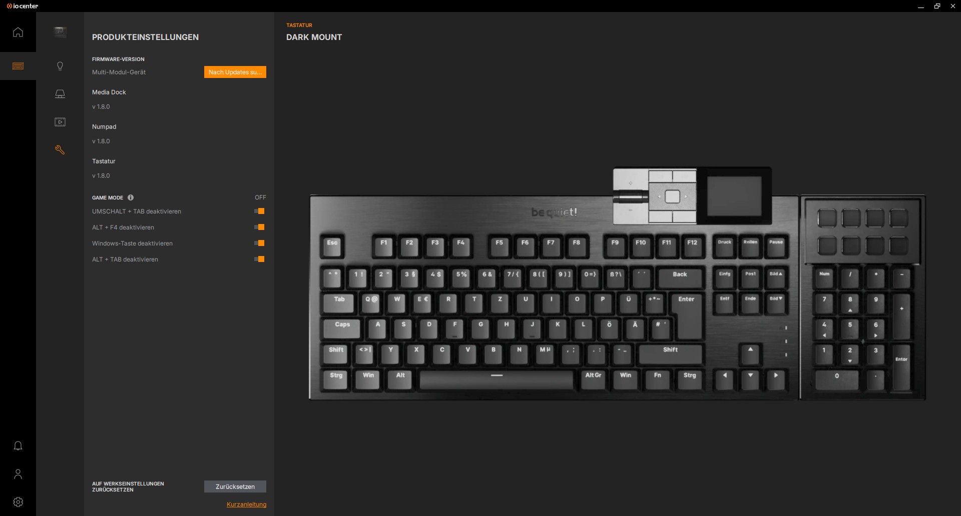 | Software | be quiet! IO Center Software, als auch über Web |