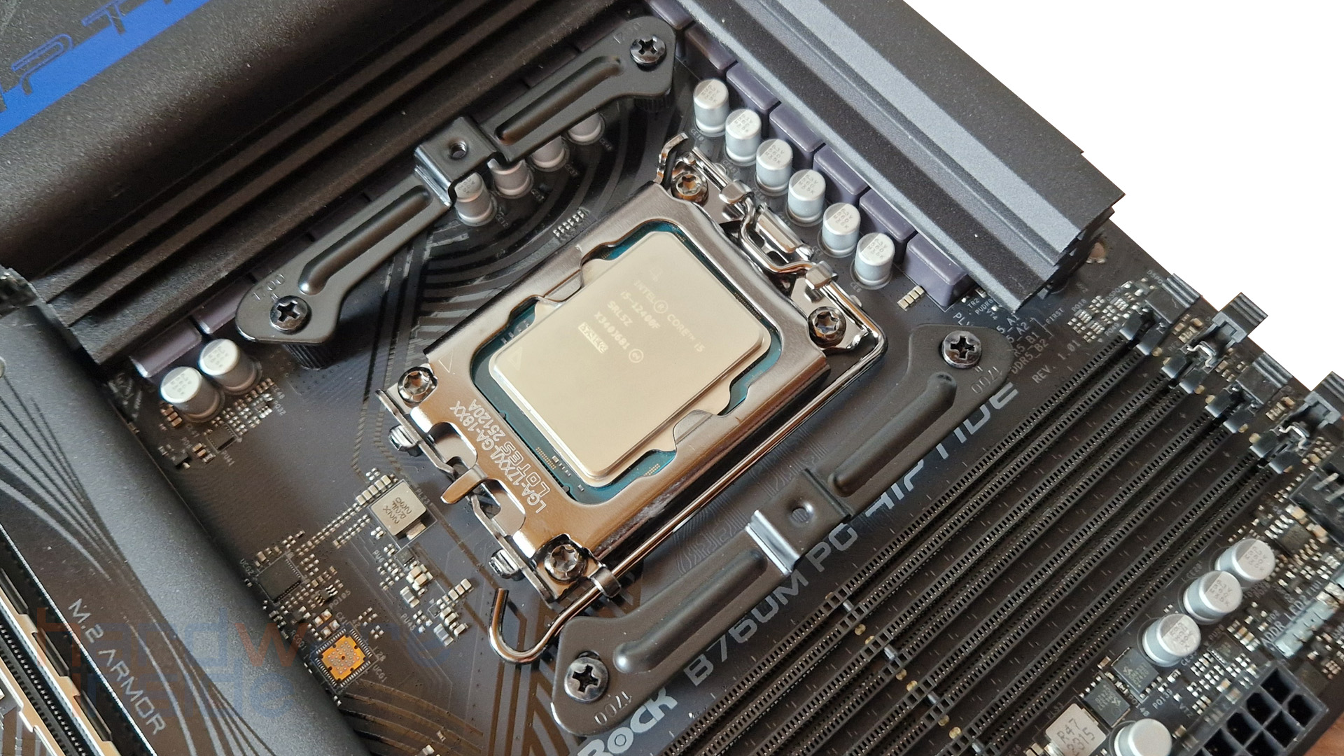 Die Montage des Kühlers ist dank der Bedienungsanleitung selbsterklärend und selbst Ungeübte kommen schnell an ihr Ziel. Die Backplate wird mittels der Schrauben und den O-Ringen befestigt. Wichtig ist, dass der richtige Halter verwendet wird, in unserem Fall der Sockel LGA1700. Zum Schluss werden die zwei Intel-Mounting-Brackets jeweils verschraubt.