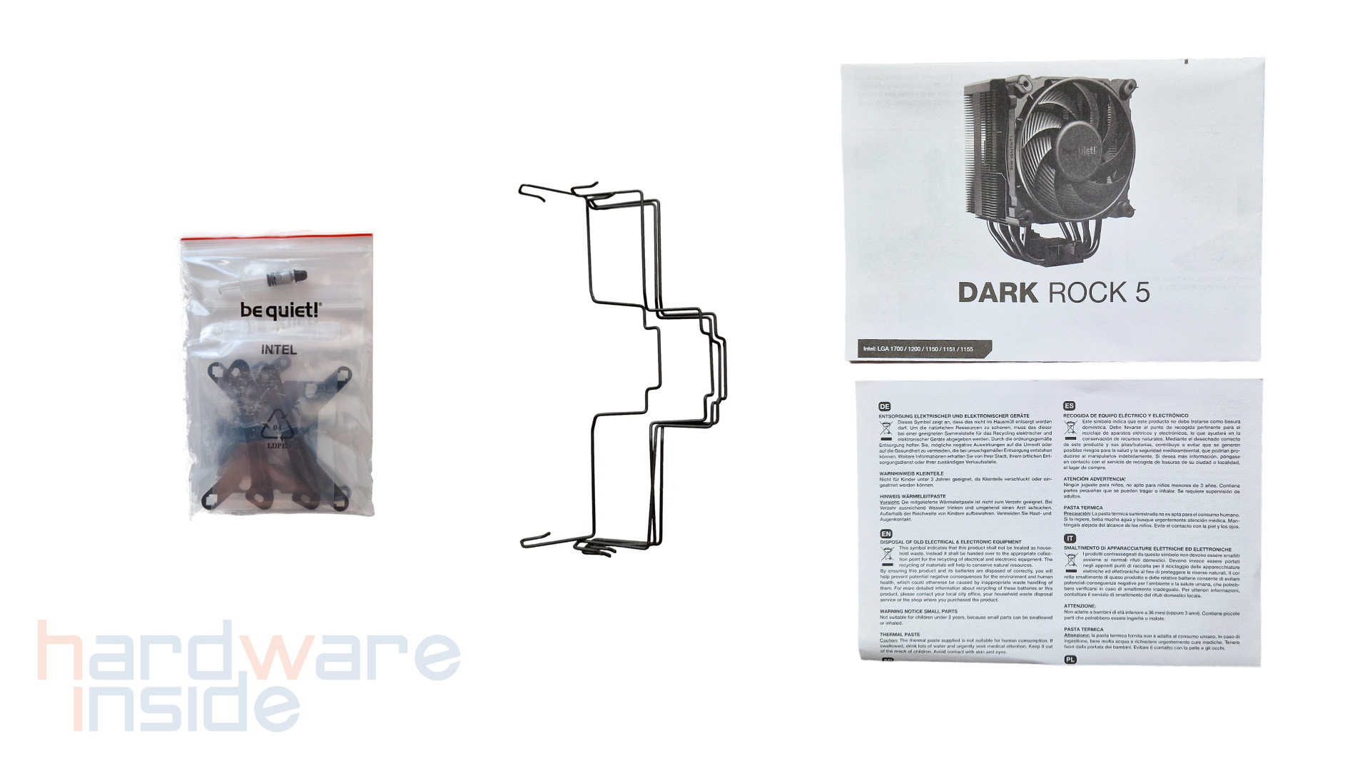 Im Lieferumfang befindet sich neben dem DARK ROCK 5, der sicher in Styroporeinlagen für den Transport verpackt ist, noch eine weitere kleine Kartonage mit folgendem Zubehör: