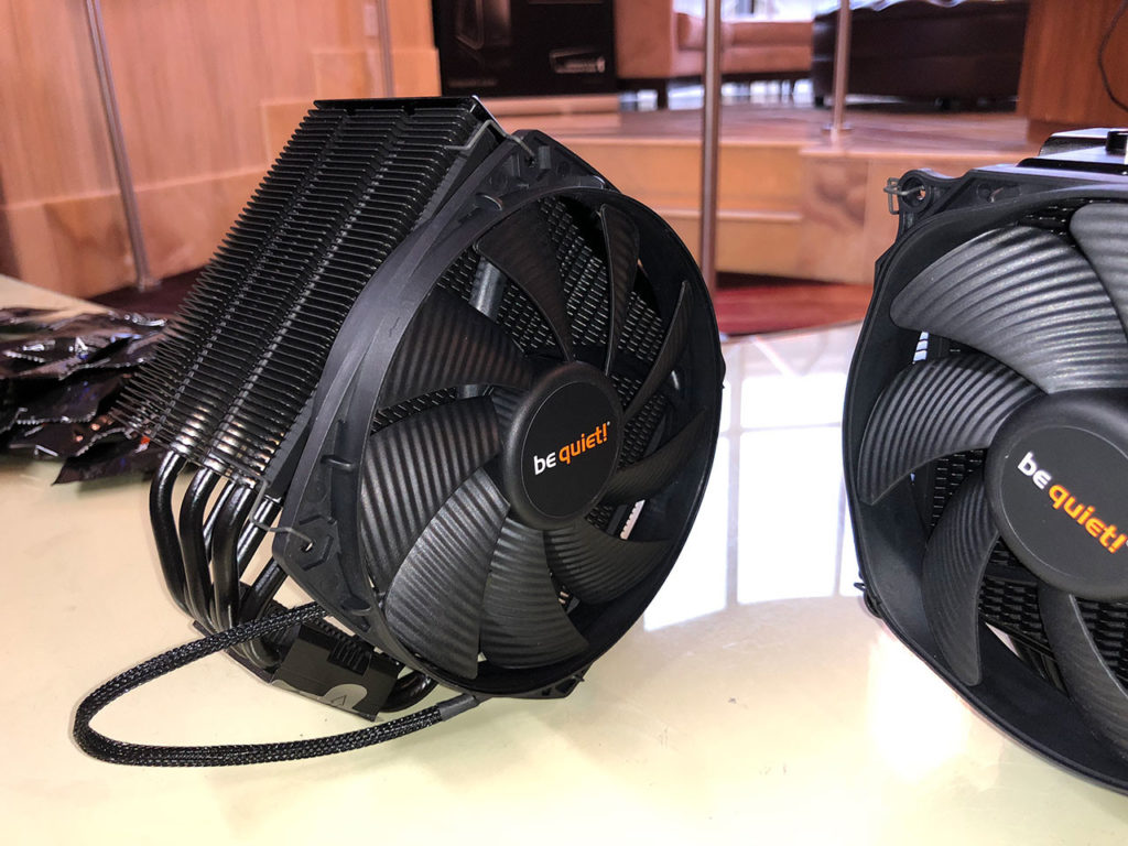 Der Dark Rock Pro 4 ist für thermische Lasten bis zu 250W ausgelegt und unterstützt somit eine Vielzahl von HEDT CPU-Sockeltypen. Be Quiet hofft, diesen Kühler irgendwann in Q2-2018 auf den Markt zu bringen. Der Dark Rock 4 hingegen verfügt über ein konventionelles Single Fin-Stack-Tower-Design mit sechs 6 mm dicken Kupfer-Heatpipes, die die Wärme durch den Fin-Stack transportieren. Der Kühlkörper wird durch einen 135 mm SilentWings Lüfter belüftet. Der Dark Rock 4 kann thermische Lasten von bis zu 200W aufnehmen und auch er wird Unterstützung für verschiedene HEDT CPU-Sockel bieten. Dieser Kühler ist auch für Q2-2018 vorgesehen. Beide Modelle zeichnen sich durch Verbesserungen des Finnen-Designs aus und eine dunkle Keramikbeschichtung, die die Wärmeableitung verbessert.