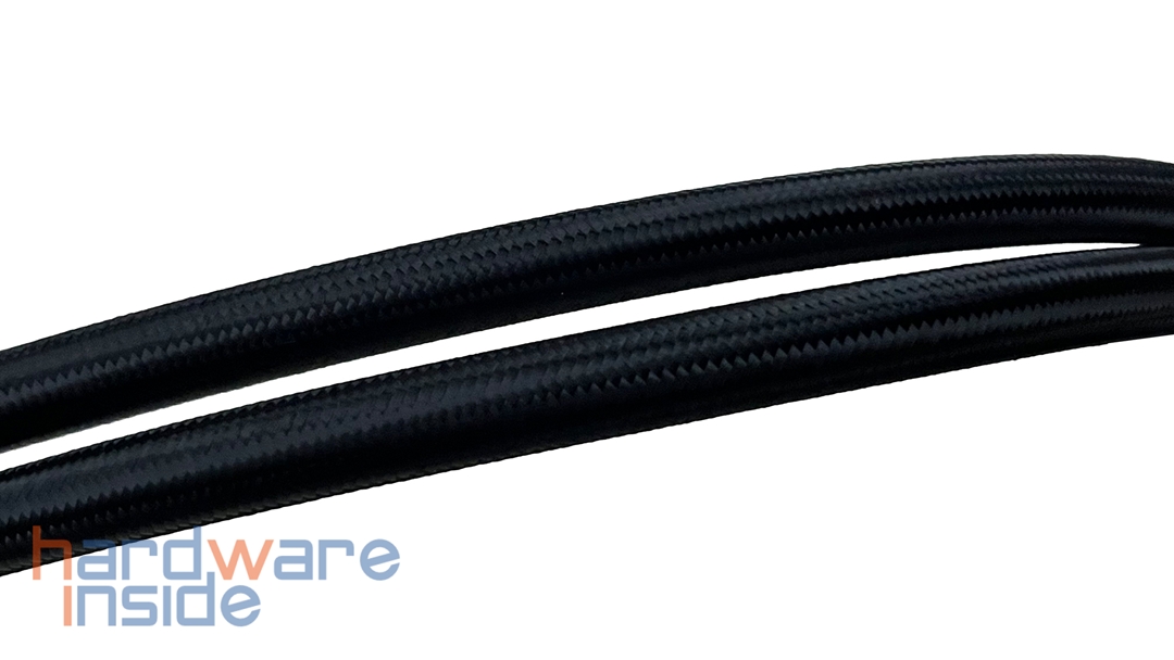 Die Schläuche der Pure Loop 3 360 mm messen 400 Millimeter in der Länge und bieten damit genügend Spielraum für verschiedene Gehäusegrößen und Einbaupositionen. Egal ob im Deckel oder an der Front montiert, reicht die Länge in den meisten Mid- und Full-Tower-Gehäusen problemlos aus. Ummantelt sind die Schläuche mit einem hochwertigen, mattschwarzen Sleeve, der nicht nur gut aussieht, sondern auch funktional überzeugt. Die Ummantelung schützt effektiv vor Knicken, ohne die Flexibilität einzuschränken, und verleiht der gesamten Einheit eine angenehme, griffige Haptik. Die Übergänge zu den Fittings sind sauber ausgeführt und wirken äußerst robust – nichts wackelt, nichts steht über.