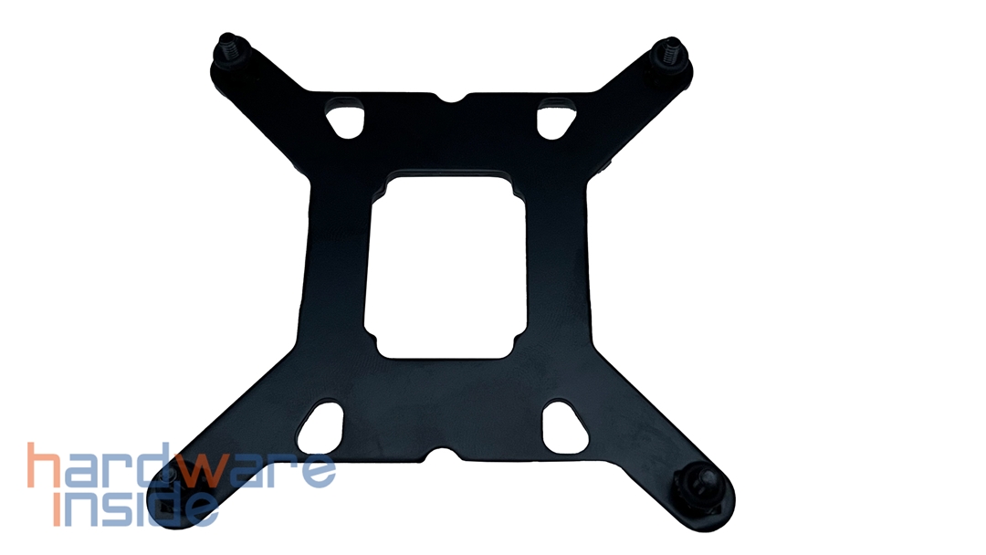 Der nächste Schritt ist die Installation des Intel-Brackets am Mainboard. Zuerst wird das Bracket von hinten auf das Mainboard aufgesetzt, sodass alle Aussparungen korrekt mit den Schraubenlöchern übereinstimmen. Danach wird das Bracket frontal am Mainboard festgeschraubt. Dank der stabilen Verarbeitung sitzt das Bracket anschließend sicher und verwindungsfrei, sodass die spätere Montage des Pumpenblocks problemlos möglich ist. Alle Schrauben greifen sauber, die Führungslöcher sind präzise positioniert, was insbesondere bei größeren Radiatoren wie der 360-mm-Version die Montage deutlich erleichtert.