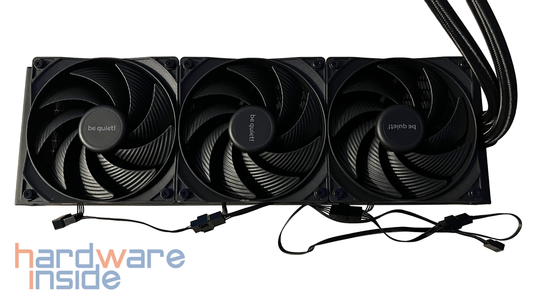 Positiv hervorzuheben ist das Daisy-Chain-System, das die drei Lüfter der 360-mm-AiO miteinander verbindet und somit den Kabelsalat deutlich reduziert. Es erleichtert den Einbau und die Integration ins System. Allerdings sollte man fairerweise sagen, dass andere Hersteller deutlich effizientere und sauberere Lösungen anbieten, um Lüfter in eine Daisy-Chain zu integrieren, wie z.B. durch schlankere Stecker, stabilere Verbindung oder kompaktere Verkabelung. Das System von be quiet! funktioniert zwar zuverlässig, wirkt aber im Vergleich eher pragmatisch und etwas weniger elegant gelöst.