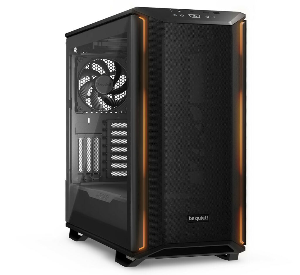 Herausragende Leistung geht bei be quiet! Hand in Hand mit atemberaubender Ästhetik. Das schlichte, komplett schwarze Design des Dark Base 701 wird durch zwei dezente ARGB-LED-Streifen aufgewertet welche seitlich am Frontpanel von oben nach unten verlaufen. Das Dark Base 701 verfügt außerdem über einen kombinierten ARGB- und Lüfter-Hub, welcher für bis zu 8 PWM-Lüfter und 2 zusätzliche ARGB-Geräte Platz bietet. Die Front-Anschlüsse umfassen dedizierte Tasten für die ARGB- und Lüftersteuerung, einen USB-Typ-C-Anschluss und zwei Typ-A-Anschlüsse, sowie einen Audioeingang und -ausgang. Kabelführungskanäle sorgen für Ordnung im Inneren des Gehäuses, während ein Seitenfenster aus gehärtetem Glas einen hervorragenden Blick auf die PC-Komponenten ermöglicht. Wie üblich bietet be quiet! eine volle 3-Jahres-Herstellergarantie.