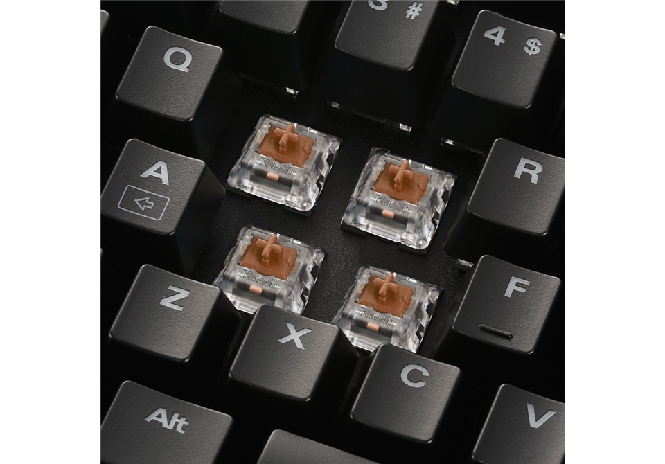 Wie bei allen mechanischen Tastaturen des Herstellers setzt man bei der SKILLER MECH SGK2 wieder auf die bewährten Schalter der Firma Kailh, dem asiatischen Spezialisten für Mikroschalter. Kunden haben die klassische Wahl zwischen blauen, braunen und roten Schaltern. Bekanntermaßen geben die taktilen blauen Schalter ein akustisches und spürbares Feedback. Wer auf das Klickgeräusch verzichten möchte, kann die ebenfalls taktilen braunen Schalter in Betracht ziehen, welche über einen spürbaren Umschaltpunkt verfügen, aber kein akustisches Feedback geben. Die roten Schalter bieten einen nicht spürbaren Umschalt- und Klickpunkt. Einheitlich ist die Betätigungskraft aller Schaltervarianten, die mit 50 Gramm angegeben wird, sowie der Weg bis zum Schaltpunkt von jeweils 1,9 Millimetern. Die Lebenserwartung der verbauten mechanischen Schalter liegt laut Herstellerangaben bei mindestens 50 Millionen Anschlägen.