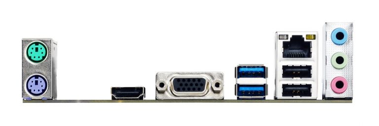 Das BIOSTAR A10N-9630E bietet folgende rückwärtigen Anschlüsse: 1x PS/2-Maus, 1x PS/2-Tastatur, 1x VGA, 1x HDMI, 1x GbE-LAN, 2x USB 3.2 Gen.1, 2x USB 2.0, 3x Audio.