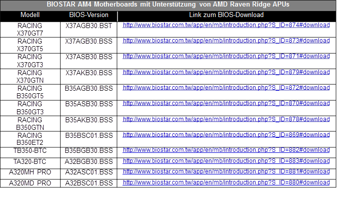 A320 AMD Raven Ridge APUs B350 Biostar Chipsätzen Motherboards X370