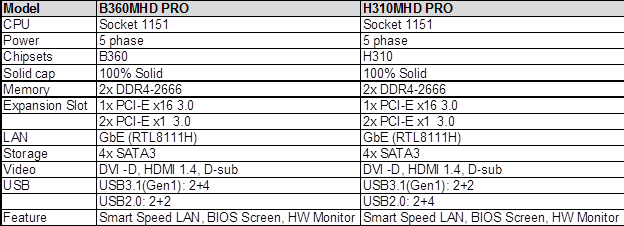 Taipei, Taiwan, 9. April, 2018 – BIOSTAR präsentiert zwei Micro-ATX Einstiegs-Mainboards mit den neuen Intel B360 und H310 Chipsätzen – BIOSTAR B360MHD PRO und BIOSTAR H310MHD PRO für Office- und Home-Entertainment-Anwendungen. Das B360MHD PRO und das H310MHD PRO verfügen über den neuen “Nano Carbon Coating” Kühlkörper von BIOSTAR für verbesserte Kühlung gegenüber Aluminium-extrudierten Kühlkörpern, AudioArt Kondensatoren mit kunstvollem Klang und Hi-Fi Audioverstärker-Effekten sowie “Tough Power Enhanced” für vollen Energie-Output ohne Verluste.