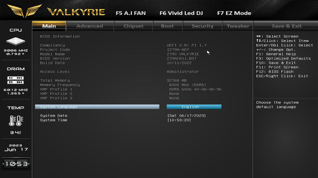 Das BIOS ist aktuell sowie das Intel ME. Das Profil „XMP 1“ lässt sich aktivieren, aber leider bleiben die beiden Sticks auf 4800MT/s stecken. Die beiden Sticks sind in den richtigen Slots drinnen, damit Dual Channel funktioniert. Mit etwas Nachjustierung der Volt von VDD, VDDQ, VPP und IMC habe ich die beiden Sticks stabil auf die 6600MT/s bringen können.