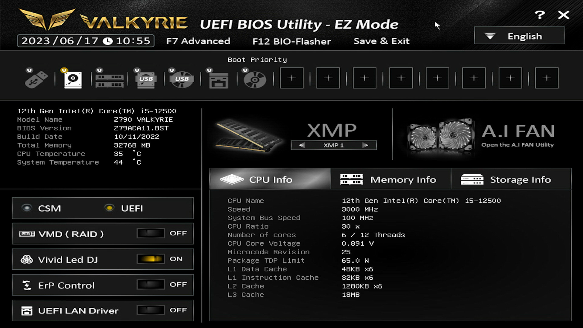 Das BIOS ist aktuell sowie das Intel ME. Das Profil „XMP 1“ lässt sich aktivieren, aber leider bleiben die beiden Sticks auf 4800MT/s stecken. Die beiden Sticks sind in den richtigen Slots drinnen, damit Dual Channel funktioniert. Mit etwas Nachjustierung der Volt von VDD, VDDQ, VPP und IMC habe ich die beiden Sticks stabil auf die 6600MT/s bringen können.