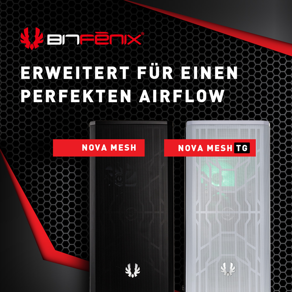 Die BitFenix Nova Mesh & Nova Mesh TG Midi-Tower bei Caseking: https://www.caseking.de/nova-mesh/