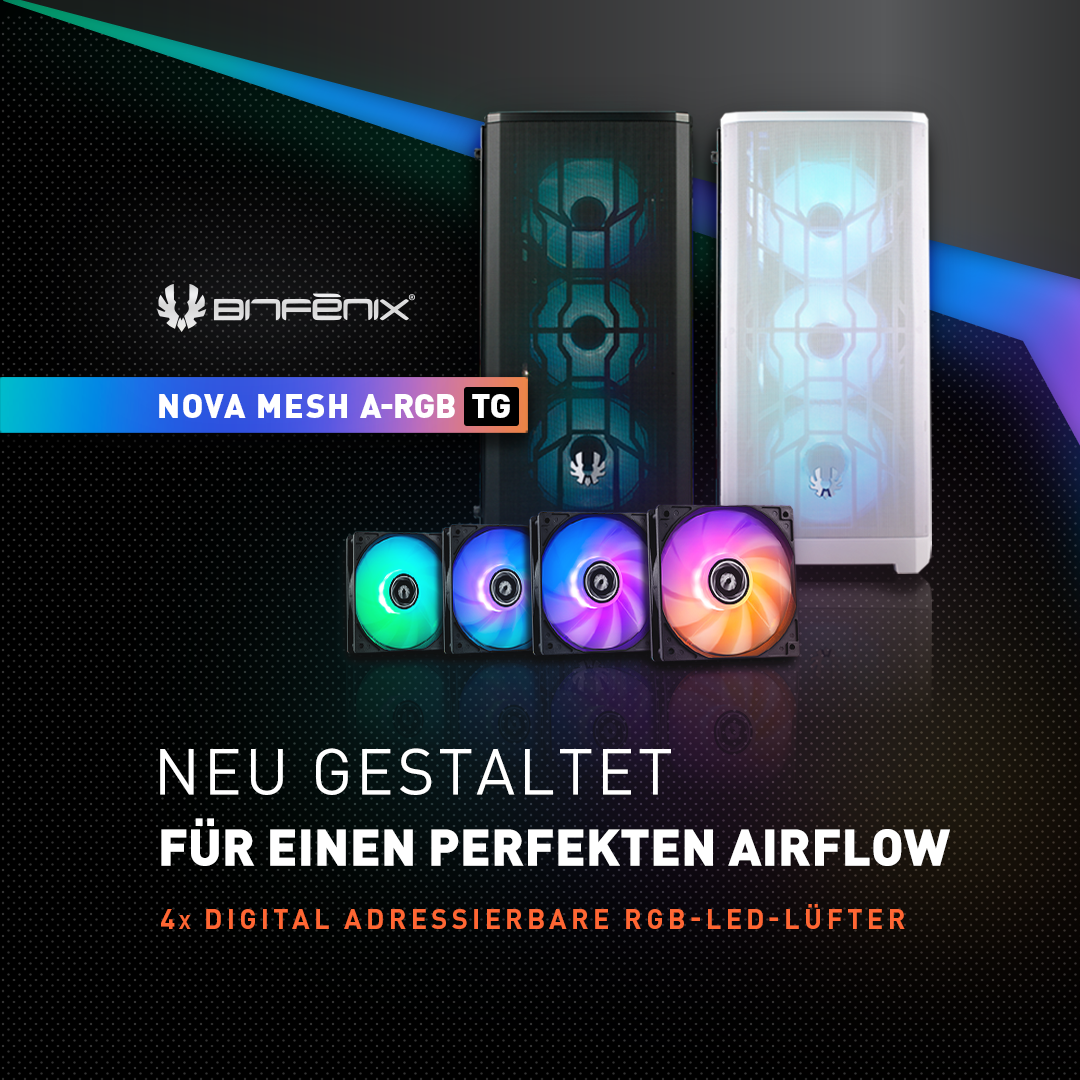 – Neue Version des beliebten Nova Mesh Midi-Towers mit vier RGB-Lüftern