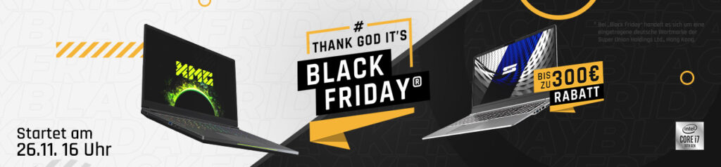 Leipzig, 26. November 2020 – Vom 26.11. bis zum 2.12.2020 bietet bestware.com, der hauseigene Online-Shop vom Schenker Technologies, ausgewählte Modelle der frei konfigurierbaren XMG- und SCHENKER-Laptops mit satten Preisnachlässen an. Unter dem Motto „Thank God it’s BLACK FRIDAY“ sind bis zu 300 Euro Rabatt drin.
