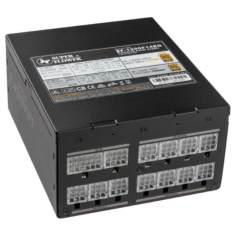 Unter der Haube werkelt bei allen Modellen von 650 bis 1.200 Watt Nennleistung ab sofort die neue Leadex-II-Plattform – natürlich aus eigener Entwicklung und Fertigung. Die Leadex II arbeiten auf Wunsch semipassiv, d.h. der Lüfter steht bei geringer bis mittlerer Last dauerhaft still. Aufgrund der niedrigen Lüfter-Drehzahl und des FDB-Lagers bleibt die Netzteile auch im aktiven Betrieb extrem leise. Wie auch bei allen anderen Leadex-Netzteilen setzt Super Flower auf voll-modulares Kabelmanagement und komplett schwarze Kabel.
