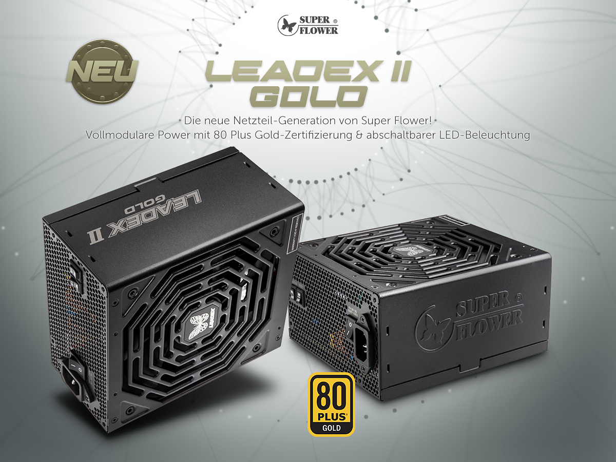 Berlin, 21.12.2016 – Super Flower macht das Beste noch besser! Mit einer fulminanten Neuauflage der beliebten Leadex-Familie spendiert Super Flower seiner High-End-Serie eine ganze Reihe von Verbesserungen. Besonders geeignet für energiehungrige Hochleistungssysteme und Overclocking-Projekte, verbinden die Leadex II-PSUs exzellente Leistung, beste Qualität und hohe Effizienz mit gelungener Optik. Die neuen Leadex II-Netzteile sind noch etwas sparsamer und leiser als die Vorgänger, liefern noch bessere Spannungen und überzeugen durch neue Features wie einer abschaltbaren LED-Beleuchtung oder einer verlängerten Garantiezeit von sieben Jahren. Jetzt bei Caseking bestellen.